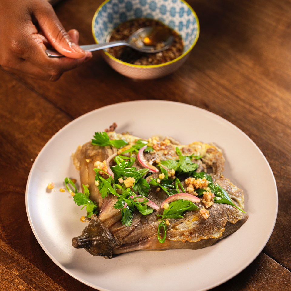 Le Tortang talong (omelette d'aubergines) est un plat traditionnel originaire des Philippines, généralement accompagné d’une sauce vinaigrée et de riz blanc. Il est souvent servi au “palenke”, l’équivalent de nos halles en France. Savoureux & bon marché, le voici revisité à la sauce Féroce !